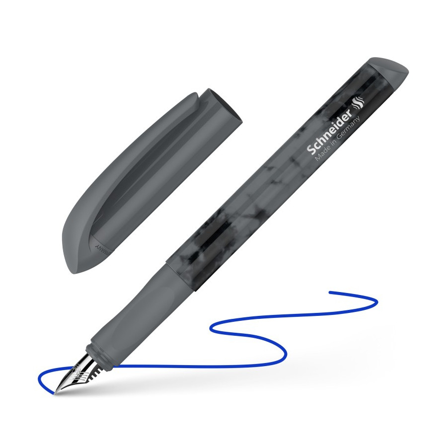 Capacul protejeaza penita durabila, realizata din otel inoxidabil la standardele Schneider. Functioneaza cu patroane universale de cerneala.