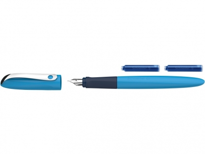 Stiloul Wavy, creat pentru elevi, este disponibil în patru culori strălucitoare — albastru, verde, roz și portocaliu -- și este echipat cu peniță din oțel inoxidabil, rezistentă, și cu vârf din iridiu - perfect pentru elevii care încep să scrie cu stiloul. Zona de prindere, cauciucată, ergonomică, potrivită pentru dreptaci și stângaci, induce poziția corectă de scris; în plus, zona generoasă pentru prindere, moale, disipă punctele de presiune.Wavy funcționează cu cartușe de cerneală și convertoare standard, ceea ce îl face ideal pentru utilizarea de zi cu zi, la școală. Produsul este fabricat cu responsabilitate față de mediu, neutru din punct de vedere ecologic.