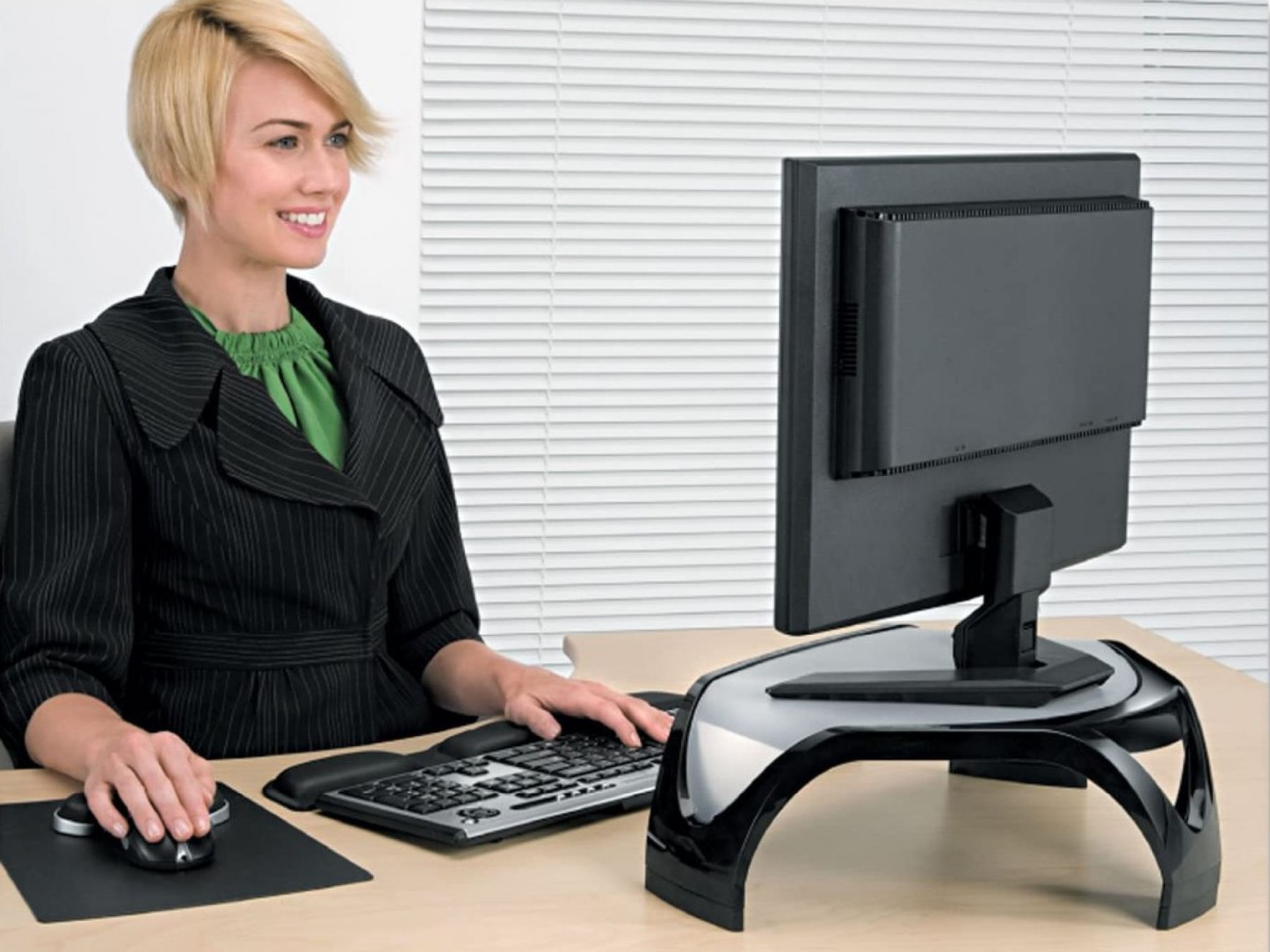 Suport ergonomic pentru monitor, având o formă unică ce permite poziționarea în colțul biroului, maximizându-se spațiul de lucru. Suportă monitoare plate cu dimensiunea maximă de 21 inch și o greutate maximă de 10 kg. Ajustare pe înălțime în 3 poziții: 10 cm, 11,5 cm și 13 cm.
