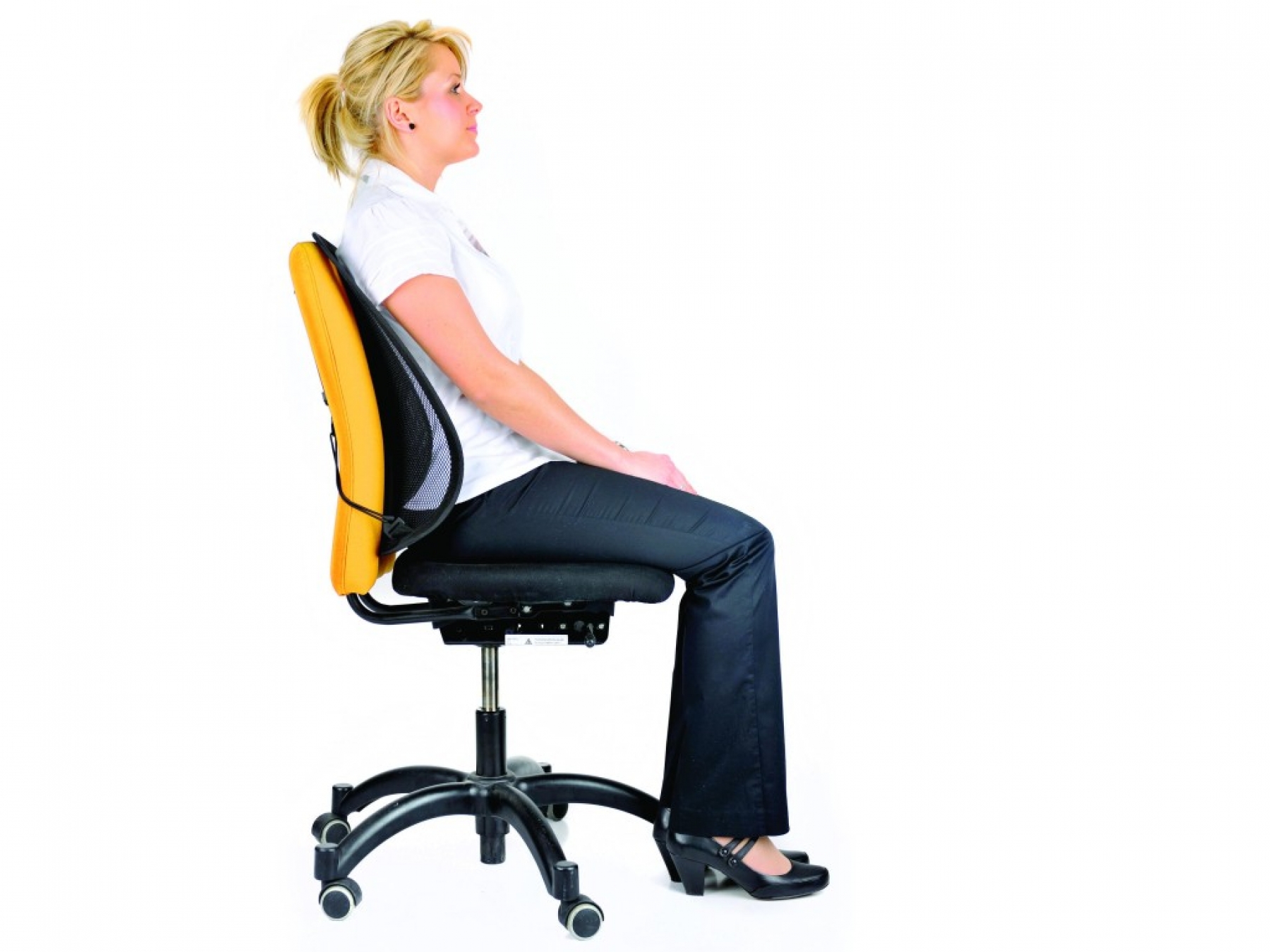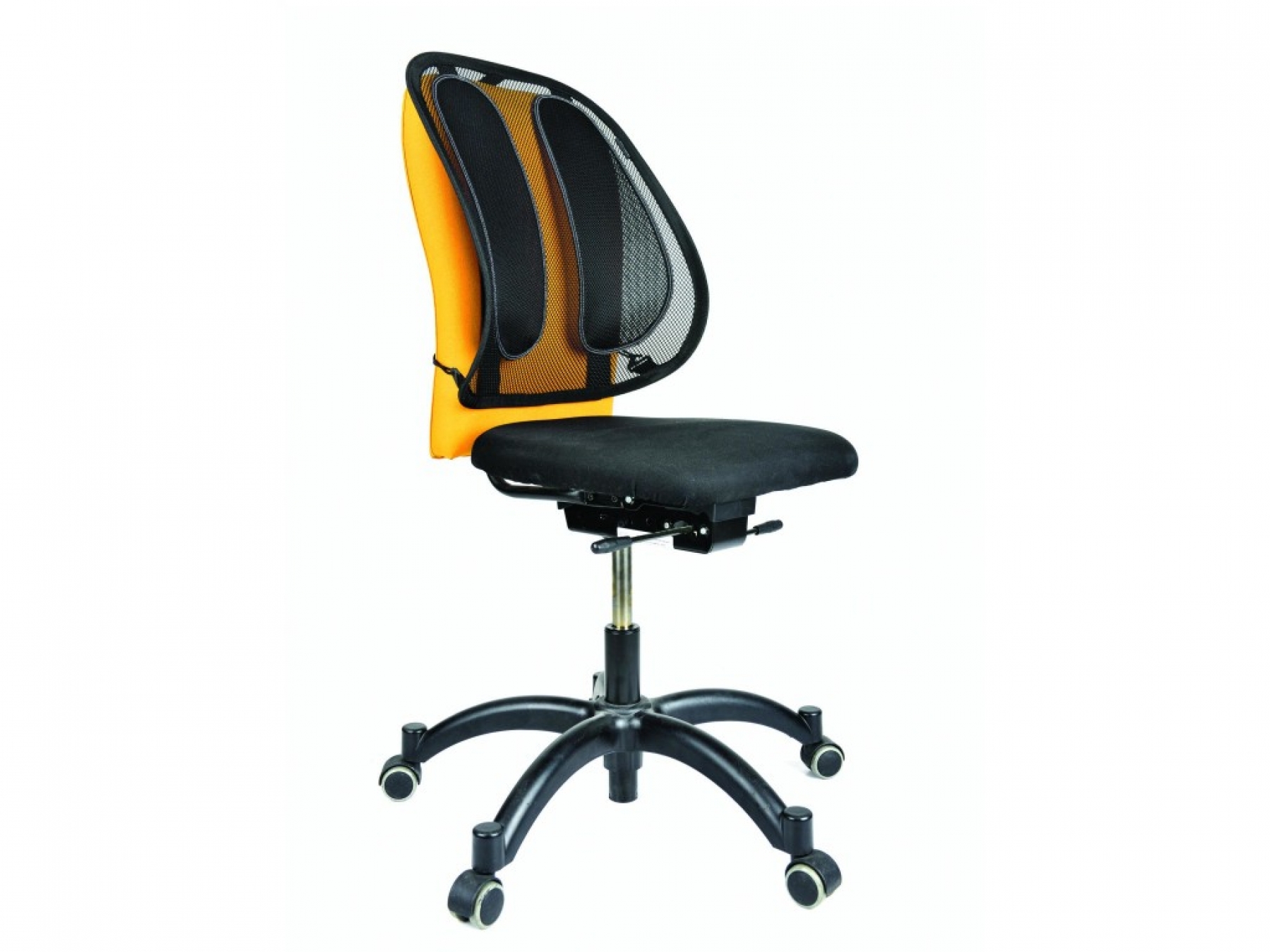 Suport lombar din mesh cu întărituri, care se adaptează la forma corpului. Țesătura cu ochiuri permite circulația aerului, asigurând confortul personal. Sistemul de fixare Tri-tensioning elimină necesitatea ajustărilor constante și se adaptează ușor la orice scaun.