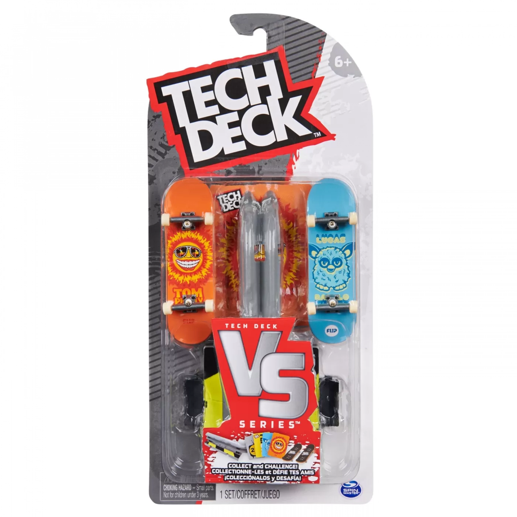 Iesi pe strazi cu noul pachet Versus Seria 2 de la Tech Deck. Intreaga lume este skatepark-ul tau cu adevarate obstacole stradale pe care poti sa te dai. Fiecare pachet Versus Seria 2 contine doua placi complet asamblate, o piesa pentru strada, astfel incat sa poti incepe distractia de freestyle imediat si carti cu provocari pe care le colectionezi si cu ajutorul carora intri in competitie cu alti skateri. Tech Deck Versus iti permite sa incepi usor si sa te plimbati intr-un mini skateboard oficial, cu grafica autentica de la companii de skateboard reale. Poti mai apoi sa cresti nivelul de dificultate si sa te dai pe fiecare element in parte, combinandu-le pentru a obtine trick-uri fabuloase. Fa un ollie, gliseaza, sau da-te pe o sina, fa un trick dement pentru a termina cu stil. Foloseste cartile cu provocari pentru a trage diferite trucuri pentru fingerboard si a te intrece cu prietenii tai. Trage o carte iar persoana care poate sa faca trick-ul castiga. Tech Deck Versus Series are tot ce iti trebuie pentru a invata si pentru a te intrece cu ceilalti fingerboarderi. Skateboard-urile si seturile de rampe Tech Deck sunt pentru copiii si iubitorii de skateboard cu varsta de cel putin 6 ani. Daca iti doresti o grafica de placa reala de la companiile de skateboard-uri reale, atunci trebuie sa fie Tech Deck - incepe de jos, devino un profesionist si colectioneaza-le pe toate.