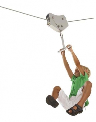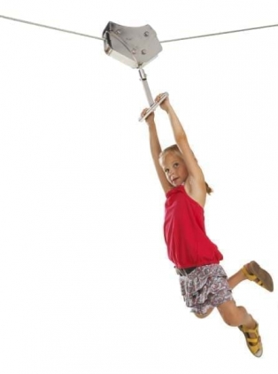Acest produs respecta toate prevederile de securitate din standardul european EN1176 14:2006 si poate fi utilizat in locurile de joaca publice, atat la interior cat si la exterior. Nu este destinat copiilor cu varsta mai mica de 3 ani. Greutatea maxima admisa 130 kg. Panta intre cele 2 structuri trebuie sa fie de minim 3%. Forta de intindere a cablului trebuie sa fie de minim 500kg. Viteza de coborare a utilizatorului nu trebuie sa fie mai mare de 7 m s. Componente incluse in pret: 1. Carucior tiroliana otel inoxidabil ( 245.001.010.001 ); 2. Cablu otel cu lungimea de 25 m. si diametrul de 10 mm. ( 241.002.010.001 ); 3. Arc franare din otel inoxidabil, lungime 1410 mm. ( 241.003.011.001 ); 4. Piesa otel galvanizat prindere si tensionare cablu otel pentru lemn cu profil patrat ( 241.004.010.001 ); 5. Piesa otel galvanizat prindere cablu otel ( 241.005.010.001 ); 6. Maner din inox ( 245.080.083.001 ). Componente si scule suplimentare, neincluse in pret, necesare montajului: 1. Structura lemn completa; 2. Burghiu pentru lemn de 16,5 si 10,5 mm.; 3. Surub M10 (cu lungimea corespunzatoare structurii de lemn) cu saiba si piulita; 4. Surub M16 (cu lungimea corespunzatoare structurii de lemn) cu saiba si piulita; 5. Burghiu pentru lemn de 40 mm.; 6. Cheie tubulara cu criket de 30, 24, 17, 13 si 10 mm.; 7. Cheie fixa de 30, 24, 17, 13 si 10 mm.; 8. Bormasina sau surubelnita electrica; 9. Cap surubelnita PZ2; 10. Foarfeca fier (pentru taiat cablul otel, in functie de necesitate). Instructiuni: Click aici Alte detalii: Click aici