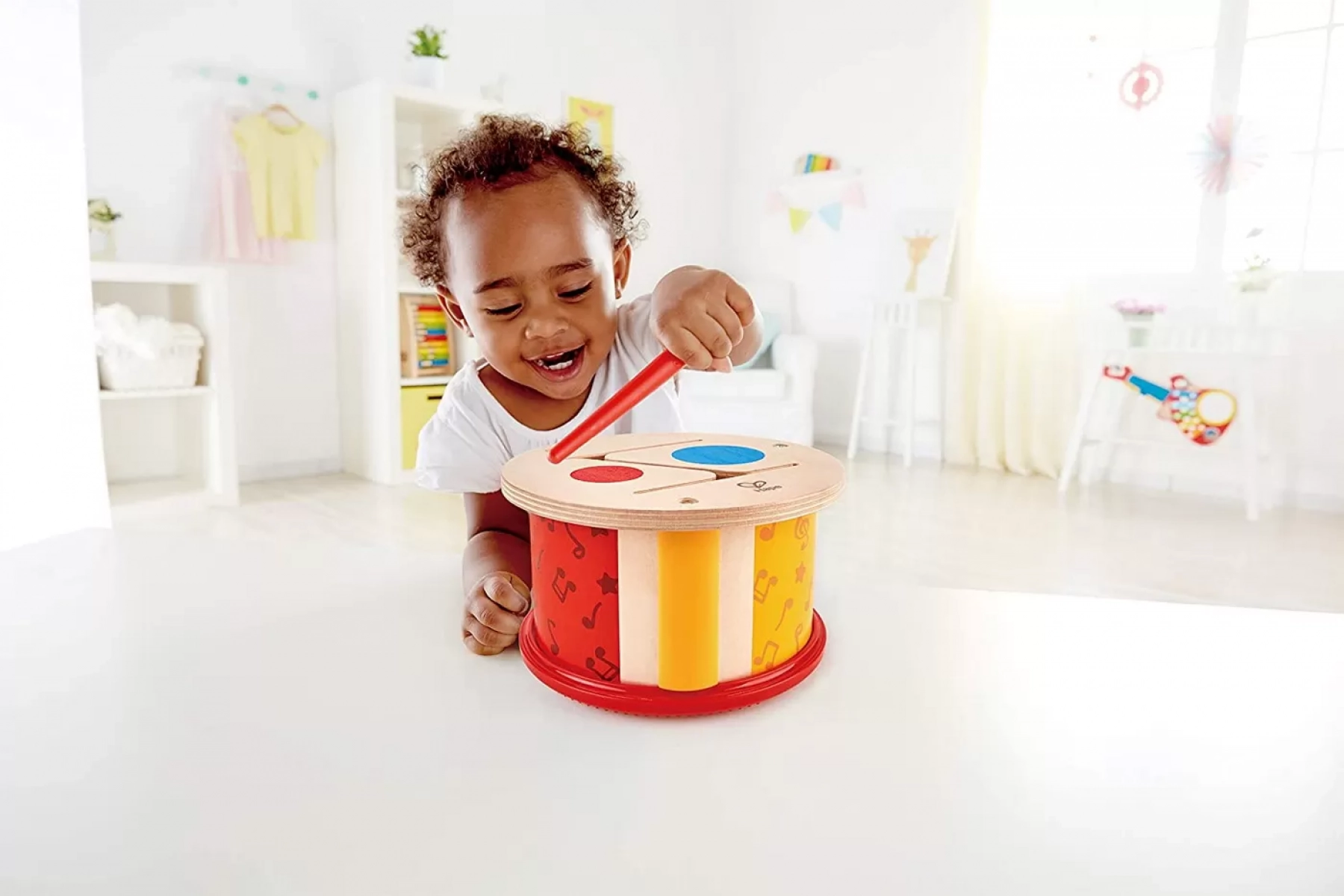 Toba cu doua fete , atingeti cu mainile sau cu betele pe suprafata din silicon, emitand un ton clasic. Sigur pentru urechile tinere datorita emisiilor sonore. Ideal pentru stimularea ritmului si coordonarea auzului si miscarii. Jucariile sunt realizate din lemn, folosind materiale ecologice, vopsite in culori atragatoare cu vopsele nontoxice, care depasesc cele mai inalte si stricte standarde internationale de siguranta si calitate, precum EN71, ISO9001, ASTM F963 si altele. De multi ani, Hape a creat jucarii fantastice, de inalta calitate, folosind materiale ecologice si durabile, fiecare produs fiind atent proiectat pentru a stimula abilitatile senzoriale, fizice si emotionale.