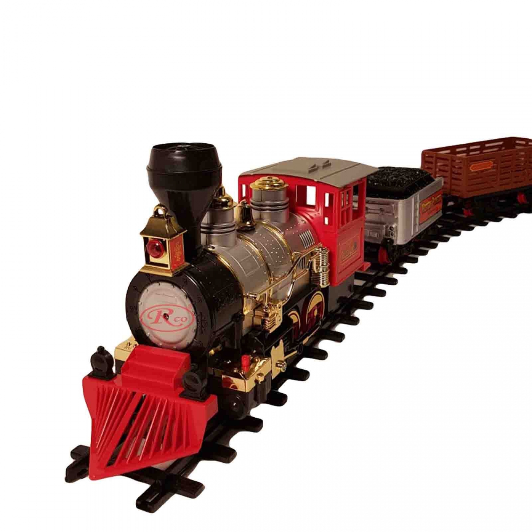Set Trenulet Electric cu lumini si sunete, Circuit cu de 24 piese, Classic Copilul tau iubeste trenurile, pistele si masinile? Setul cu trenulet electric este un cadou perfect care cu siguranta va fi iubit atat de cei mici cat si de cei mari. Este o jucarie grozava pentru ore intregi de distractie alaturi de parinti. Asezarea pistelor si apoi testarea intregului circuit cu trenuri ofera multa distractie pentru fiecare copil. Lungimea caii ferate este de pana la 385 cm! Un trenulet este o idee minunata pentru a va antrena imaginatia si a sustine creativitatea copilului. Potrivit pentru distractie acasa cu prietenii. Setul este format din 24 elemente realizate cu precizie si frumos finisate, care pot fi aranjate dupa propria imaginatie. Setul include, printre altele, o pista, doua trenuri de marfa, un tren de pasageri si un vagon. Locomotiva emite sunete asemanatoare cu ale unui tren, are lumini intermitente placute ochiului si genereaza fum (smoke, include recipient pentru dozarea apei) in timpul deplasarii. Caracteristici: Varsta recomandata: 3 ani+ Material: Plastic Dimensiune locomotiva: 26.5 cm x 12 cm x 7 cm Dimensiune vagon: 24 cm x 9 cm x 6 cm Dimensiune trenuri cu marfa: 18 cm x 8 cm x 5.5 cm Culoare: Multicolor Avertismente! Jucaria produsul poate contine piese mici care se pot inghiti sau inhala existand pericolul de sufocare. Indepartati orice ambalaj al jucariei produsului inainte de a da jucaria produsul copilului. Va rugam sa supravegheati copilul in timp ce se joaca foloseste acest produs. Pastrati instructiunile si etichetele pentru referinte viitoare. Pastrati jucaria produsul departe de foc, feriti jucaria produsul de temperaturi ridicate si umiditate. Imaginile au caracter informativ. Nuanta, tonul si intensitatea culorii pot varia in functie de monitor.