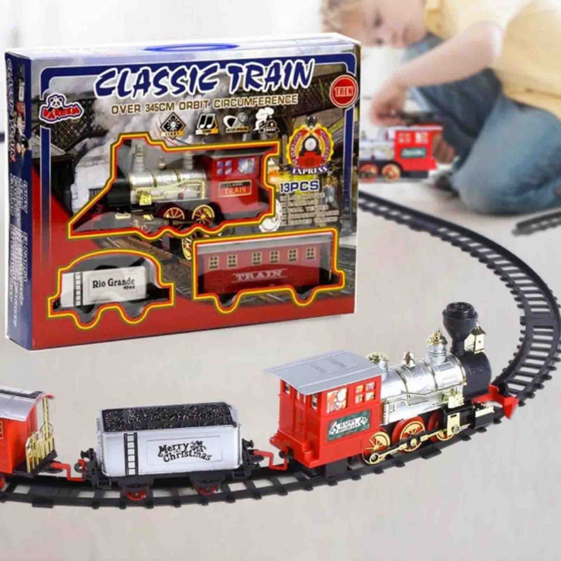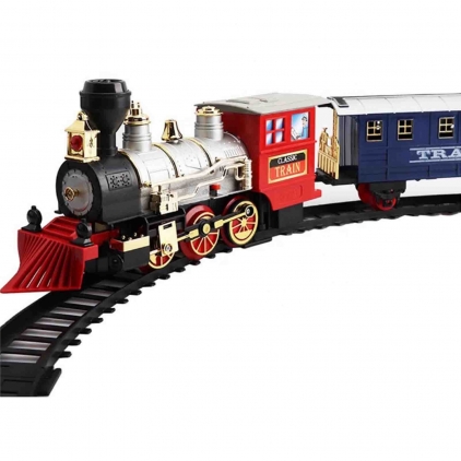 Set Trenulet Electric cu lumini si sunete, Circuit cu de 13 piese, Classic Copilul tau iubeste trenurile, pistele si masinile? Setul cu trenulet electric este un cadou perfect care cu siguranta va fi iubit atat de cei mici cat si de cei mari. Este o jucarie grozava pentru ore intregi de distractie alaturi de parinti. Asezarea pistelor si apoi testarea intregului circuit cu trenuri ofera multa distractie pentru fiecare copil. Lungimea caii ferate este de pana la 345 cm! Un trenulet este o idee minunata pentru a va antrena imaginatia si a sustine creativitatea copilului. Potrivit pentru distractie acasa cu prietenii. Setul este format din 13 elemente realizate cu precizie si frumos finisate, care pot fi aranjate dupa propria imaginatie. Setul include, printre altele, o pista, un tren de marfa, un tren de pasageri si un vagon. Locomotiva emite sunete asemanatoare cu a unui tren, are lumini intermitente placute ochiulul si genereaza fum (smoke) in timpul deplasarii. Caracteristici: Varsta recomandata: 3 ani+ Material: Plastic Dimensiune locomotiva: 26.5 cm x 12 cm x 7 cm Dimensiune vagon: 24 cm x 9 cm x 6 cm Dimensiune tren cu marfa: 18 cm x 8 cm x 5.5 cm Numar piese: 13 Culoare: Multicolor Avertismente! Jucaria produsul poate contine piese mici care se pot inghiti sau inhala existand pericolul de sufocare. Indepartati orice ambalaj al jucariei produsului inainte de a da jucaria produsul copilului. Va rugam sa supravegheati copilul in timp ce se joaca foloseste acest produs. Pastrati instructiunile si etichetele pentru referinte viitoare. Pastrati jucaria produsul departe de foc, feriti jucaria produsul de temperaturi ridicate si umiditate. Imaginile au caracter informativ. Nuanta, tonul si intensitatea culorii pot varia in functie de monitor.
