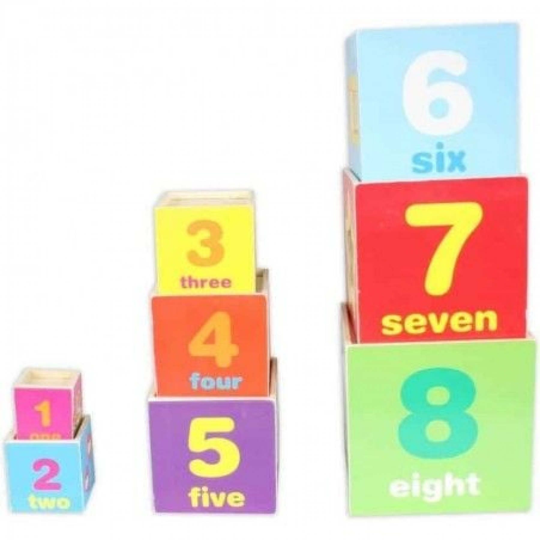 Turn Montessori din lemn 8 cuburi cu cifre, forme si animale. Turn Montessori din lemn 5 cuburi cu cifre, forme si animale.Turn Montessori din lemn 8 cuburi cu cifre, forme si animale. Setul include 8 cuburi de marimi diferite, care pot fi introduse unul in altul pana ramane un singur cub (cel mai mare ca dimensiuni), iar atunci cand sunt suprapuse formeaza un turn. Piramida din lemn sau turn Montessori este o jucarie educativa multifunctionala si are urmatoarele caracteristici: - prin suprapunerea cuburilor in ordine secventiala a marimii , de la cel mai mare la cel mai mic se obtine un turn inalt, copilul invatand astfel succesiunea marimilor; - greutatea cuburilor difera in functie de marimea cubului, astfel incat poate invata si notiunea de greutate; - cele 4 fatete desenate ale cuburilor il vor invata pe copil cifre, reprezentarea grafica a cifrelor prin grafica cu diferite obiecte, animale si asocierea cifrelor cu numarul obiectelor animalelor desenate; - cuburile pot fi introduse unul in altul tot in ordinea marimii; - functie de sortare forme geometrice, cuburile avand insertii sub diferite forme, in care se pot introduce formele geometrice - asocierea. Material : Lemn, piesele sunt vopsite cu vopsele nontoxice, in culori vii. Varsta : 36+ luni. Dimensiune : 20 cm x 21 cm. Avertismente! Jucaria produsul poate contine piese mici care se pot inghiti sau inhala existand pericolul de sufocare sau nu este potrivita copiilor mai mici de 3 ani. Nu lasati ambalajele jucariilor produselor la indemana copiilor. Indepartati orice ambalaj al jucariei produsului inainte de a da jucaria produsul copilului. Va rugam sa supravegheati copilul in timp ce se joaca foloseste acest produs. Pastrati instructiunile si etichetele pentru referinte viitoare. Pastrati jucaria produsul departe de foc, feriti jucaria produsul de temperaturi ridicate si umiditate. Produsul este nou si comercializat in ambalajul original al producatorului. Imaginile au caracter informativ. Nuanta, tonul si intensitatea culorii pot varia in functie de monitor.