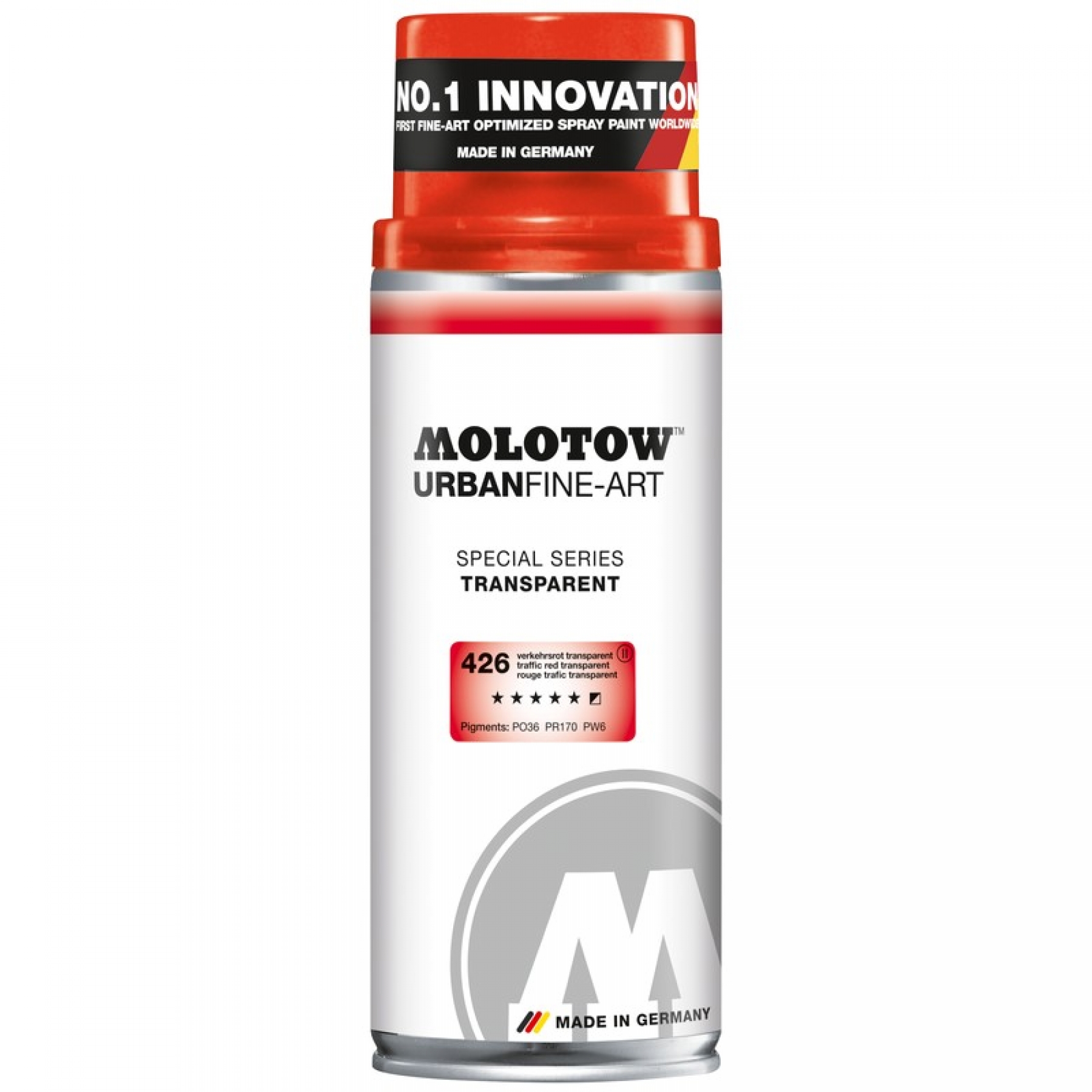 Conține vopsea transparentă de bună calitate. Semilucios, transparent, permanent, cu rezistență bună la UV. Se usucă rapid și este aplicabil pe aproape orice tip de suprafață de interior sau exterior. Echipat cu pulverizator schimbabil ce permite o aplicare cu grosime variabilă de la 4 la 200 de milimetri. Permite o manevrare facilă (este potrivit și pentru începători). Cantitate: 400 ml. Compatibil cu markerele și spray-urile MOLOTOW™. Aerosol extrem de inflamabil! Poate exploda la contactul cu o sursă de căldură. A se evita contactul cu ochii.- Vopsea transparentă de calitate - Semi-lucios - Transparent - Permanent - Buna rezistență UV - 5 nuanțe de culoare - Aplicare cu grosime variabila: 4-200 mm - Cantitate: 400 ml