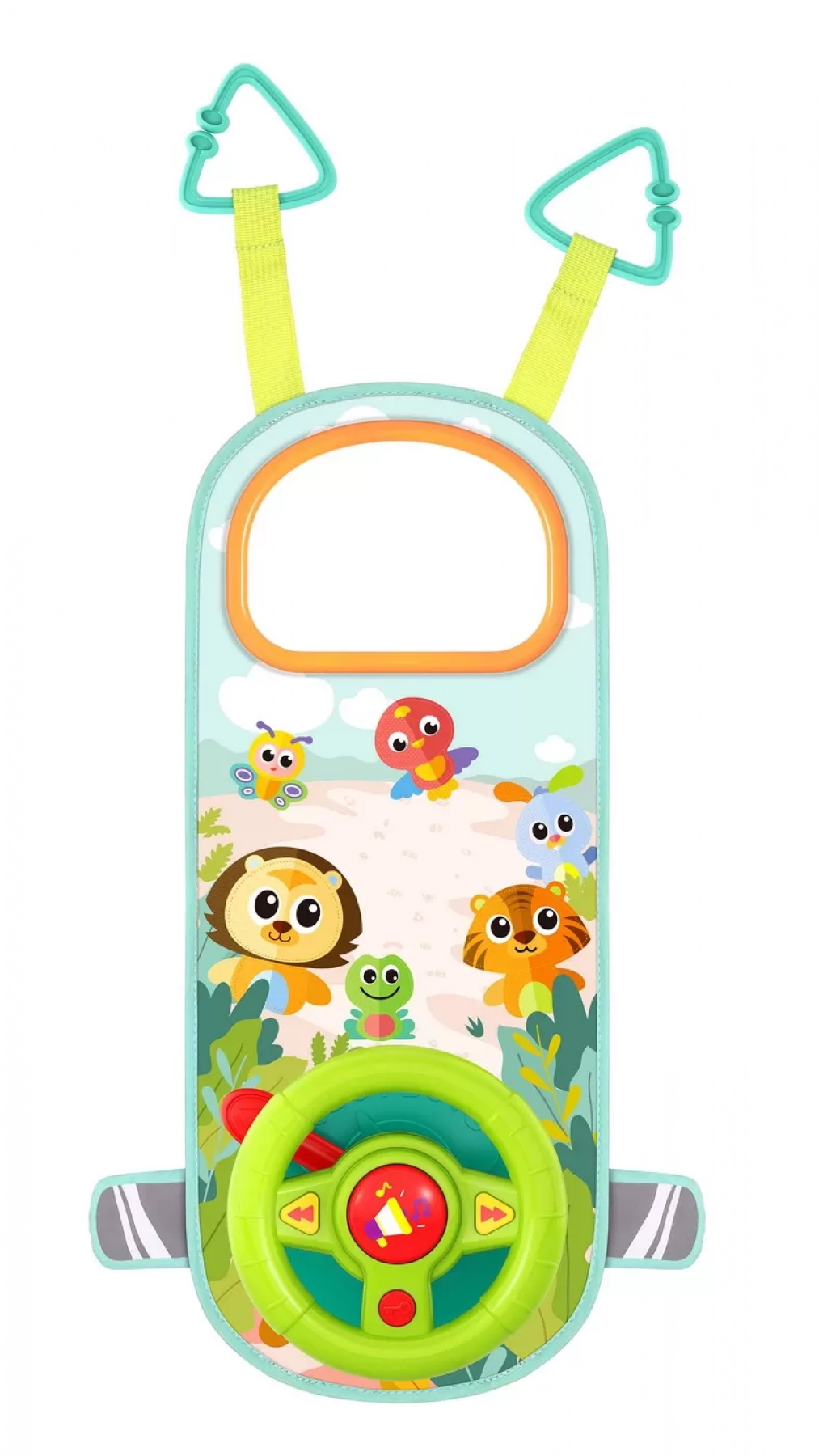 Jucaria vine dotata cu mecanism cu volan care se poate roti. culorile atrag privirile celui mic, starnindu-i curiozitatea si dorinta de a invata. sunetele si melodiile emise de catre aceasta ii starnesc curiozitatea, descoperind noi moduri de a se juca.