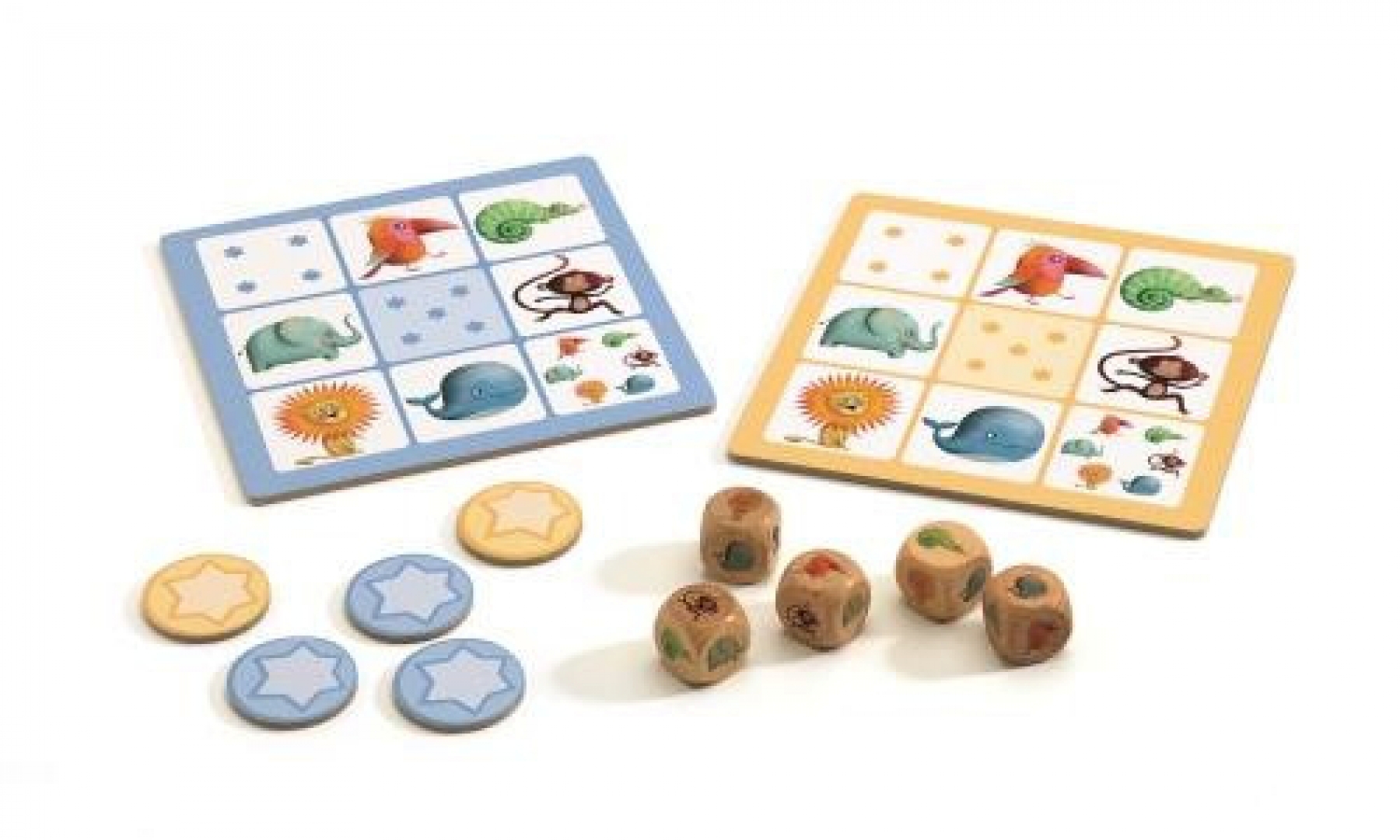 Celebrul joc Yahtzee (Yams) actualizat pentru cei mici. Zarurile prezinta animale care trebuie puse in grupuri din 3 aruncari pentru a forma trei familii, patrate, si mai ales, Yahtzei ca niste adulti! Continut: 5 zaruri de lemn cu animale, 4 planse si 28 de jetoane de carton. Varsta recomandata: 4 - 8 ani. Confectionat din materiale non-toxice, cu vopsele non-toxice, conform reglementarilor EN71ASTM. AVERTISMENT: Contraindicat copiilor sub 3 ani. A se utiliza sub directa supraveghere a unui adult. Producator: Djeco, Franta.