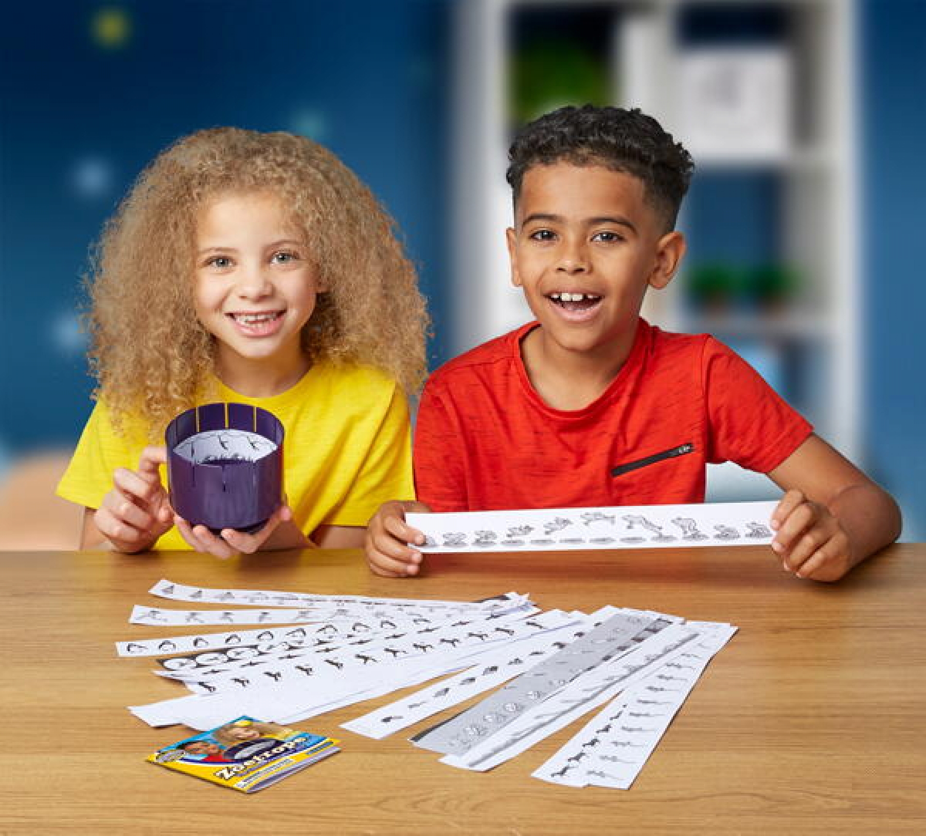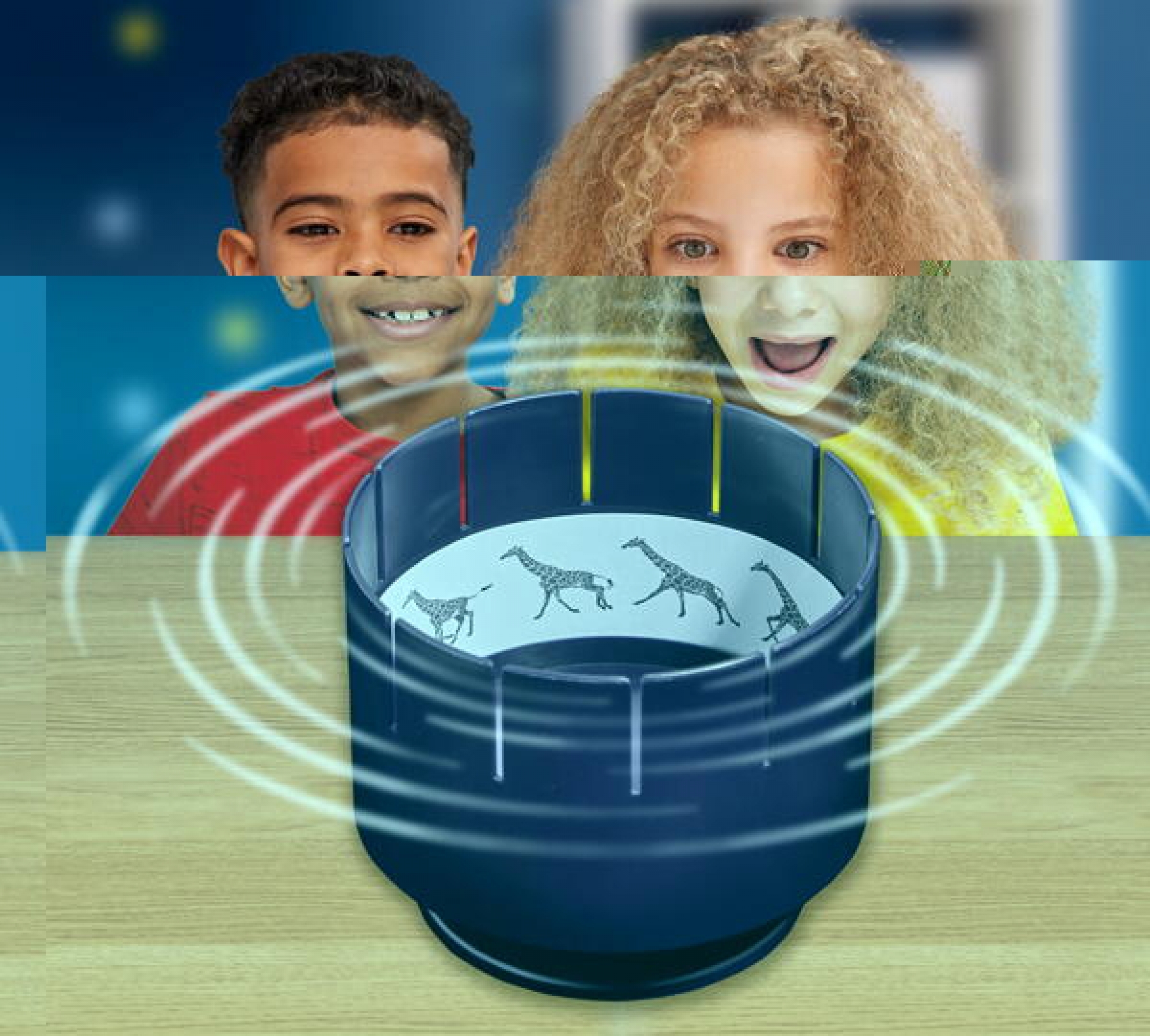 Copiii vor invata stiinta culorilor si cum functioneaza animatia Zoetrop Caracteristici: adauga o banda cu imagini statice la Zoetrop, rotiti-le si vedeti cum se misca folositi benzile goale pentru a va desena propriile imagini si a le aduce la viata include 18 benzi de animatie si sase benzi pentru a va crea propriile desene codul secret deblocheaza informatii online despre istoria si stiinta Zoetropului Dimensiune ambalaj: 16 x 10.4 x 10.4 cm Varsta recomandata: 6 ani+ Atentie! Contraindicat copiilor mai mici de 3 ani. Jucaria produsul poate contine piese mici care se pot inghiti sau inhala existand pericolul de sufocare. Nu lasati ambalajele jucariilor produselor la indemana copiilor. Indepartati orice ambalaj al jucariei produsului inainte de a da jucaria produsul copilului. Va rugam sa supravegheati copilul in timp ce se joaca foloseste acest produs. Pastrati instructiunile si etichetele pentru referinte viitoare. Pastrati jucaria produsul departe de foc, feriti jucaria produsul de temperaturi ridicate si umiditate.